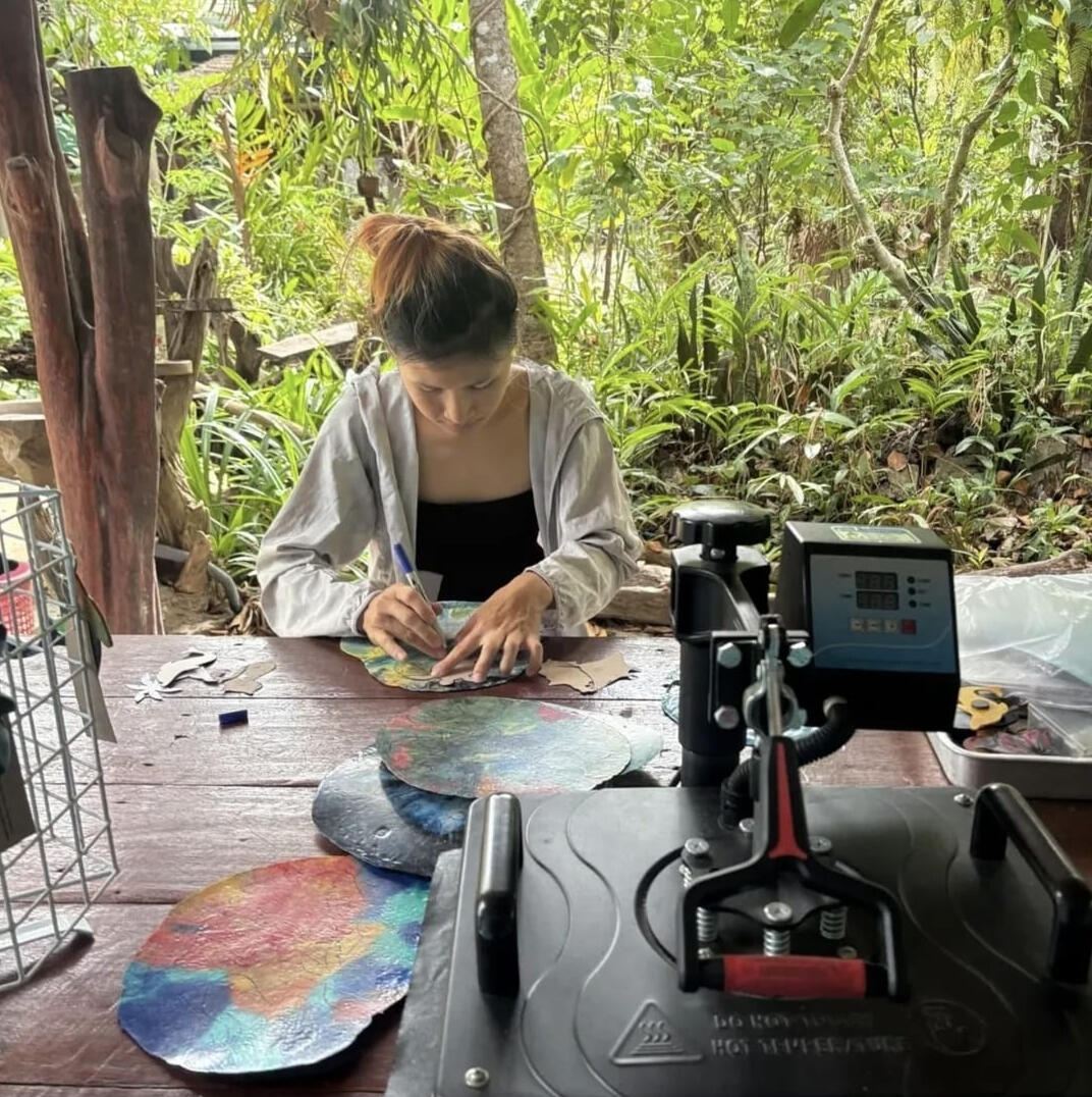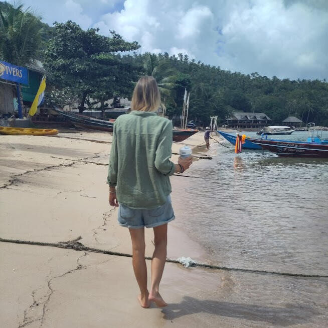 Hi, I’m Maris! My sustainability journey started in 2018 when I realized how many single-use cups I was using while traveling for work. Switching to a simple foldable coffee cup sparked a bigger mission: reducing plastic waste and inspiring action.In 2023, I moved to Koh Samui, Thailand, and started turning collected ocean plastic into handcrafted souvenirs and decorations. Even clean-looking beaches were full of microplastics, so we needed a hands-on solution that not only cleans the environment but empowers local communities.